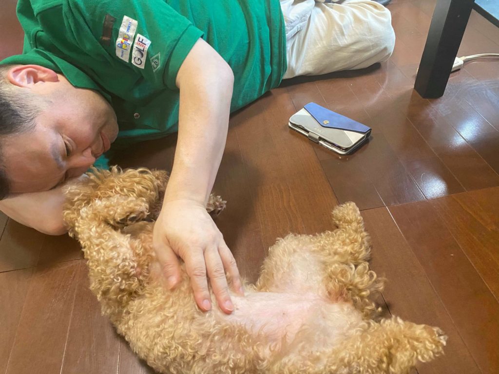 我が家の人見知りのこむぎも先生が最初から大好きで骨抜きにされていました。